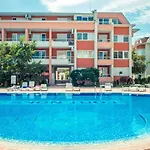Il comprend une cuisine équipée avec un micro-ondes et un réfrigérateur. Les installations indépendantes comprennent également une cafetière/théière. Différentes options de restauration, y compris La Banana Bar and Food et Euphoria Bar & Grill peuvent être atteintes à moins de 150 mètres. L'aéroport Aeroport de Bourgas peut être atteint en une route de 30 minutes en voiture. L'utilisation d'une piscine extérieure peut contribuer à un séjour plus agréable. Grâce au billard, les clients actifs peuvent diversifier leurs loisirs. Pour ceux qui voyagent avec des enfants, des berceaux sont fournis.